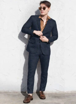 Keep looking sharp with the classic style of our Chambray Black Pure Linen Suit. Crafted from Linen in 40s Lea, the suit features a light-weight fabric with colored thread in the warp and white filling threads in the weft. Whether you’re celebrating a special family occasion or simply want a new piece to refresh your working wardrobe, this chambray black suit is an excellent addition to your collection.