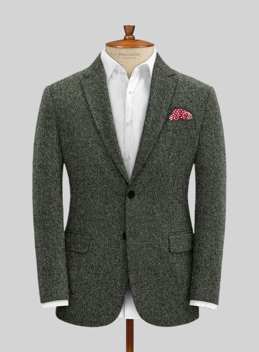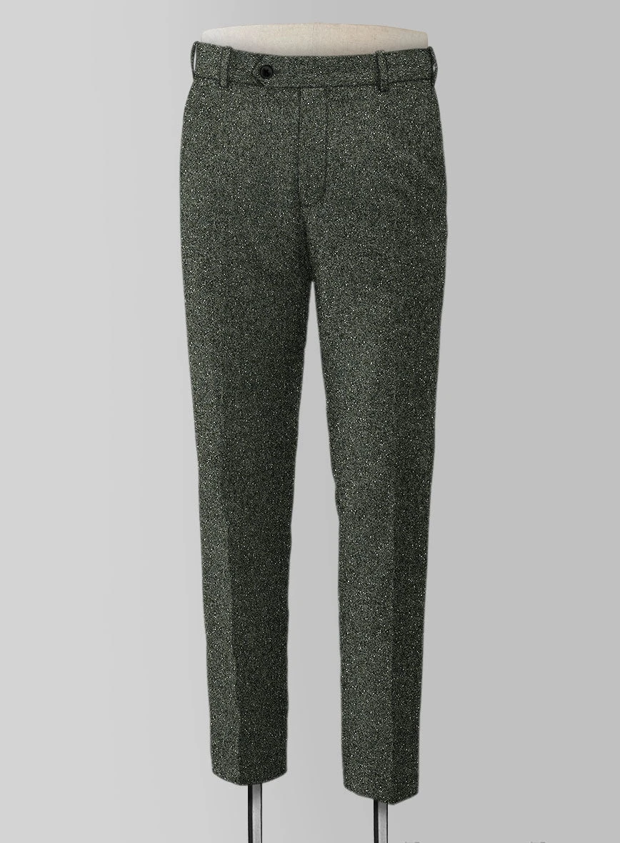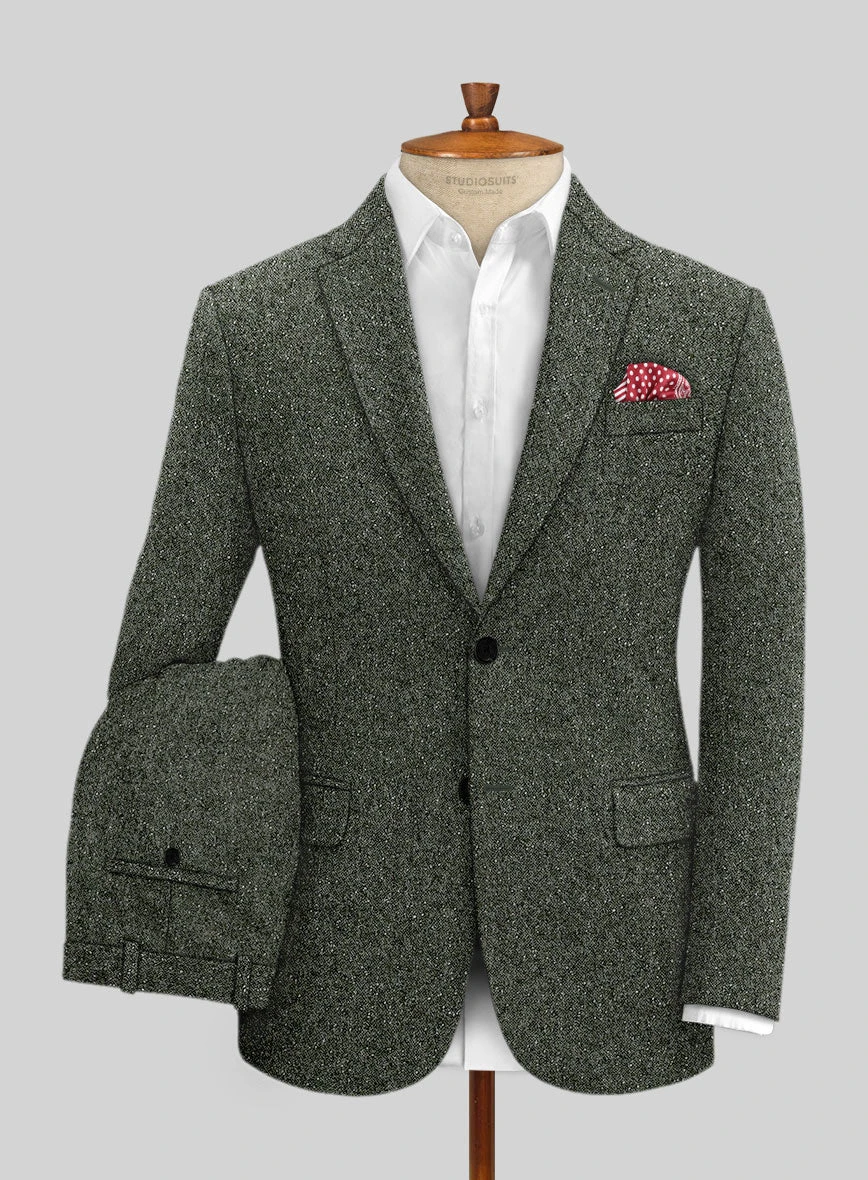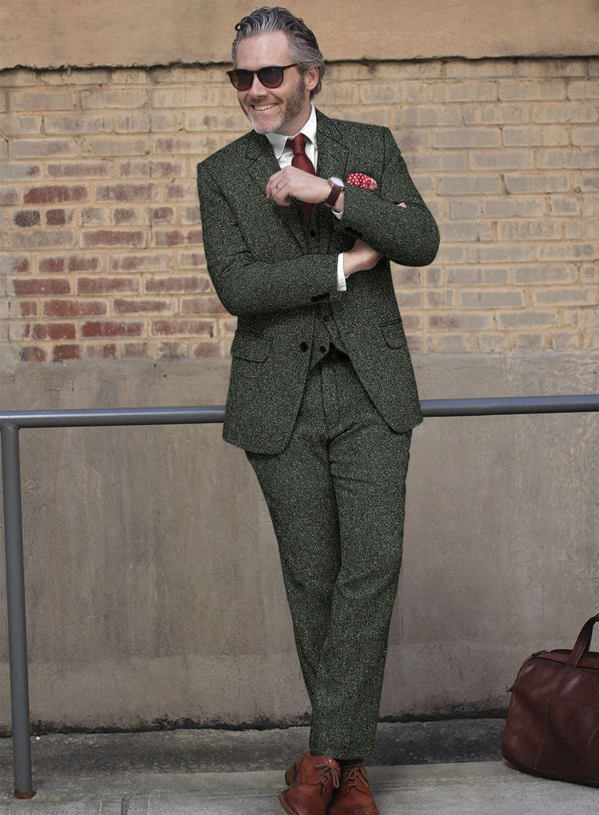 Freshen up your tweed collection with this olive addition. Crafted from wool, Donegal tweed still runs strong as a mainstay of tweed collection with a radically contemporary twist. The fabric is coarse which produces a rustic look and features contrast-colored flecks that produce a smart, sporty look. Keep it sharp with a matching waistcoat, white shirt and black shoes.