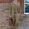 Elevate your formal appeal with our Deep Blue Herringbone Tweed suit. Crafted from herringbone weave in deep blue, the tweed suits offer contemporary tailoring at its finest. Pair it with a matching waistcoat, a crisp white shirt, light blue patterned tie and brown shoes.