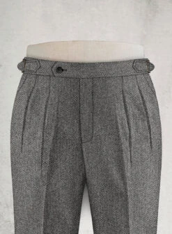 Carry a look that speaks of confidence and the latest metropolitan style by wearing our Harris Tweed Barley Gray Highland Trousers. Crafted from wool, the trousers are one of the smartest and coolest ways to stay warm and is both practical and stylish, also the herringbone weave offers a contemporary take on heritage pattern.