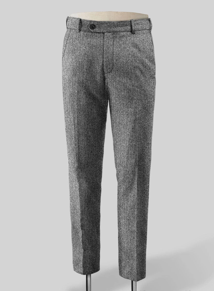 Throw some pattern into your attire with our Harris Tweed Gray Herringbone pants. Crafted from pure wool, the pants allow you to make an unforgettable impression. Don it with matching jacket and waistcoat, a white shirt and black derby shoes.