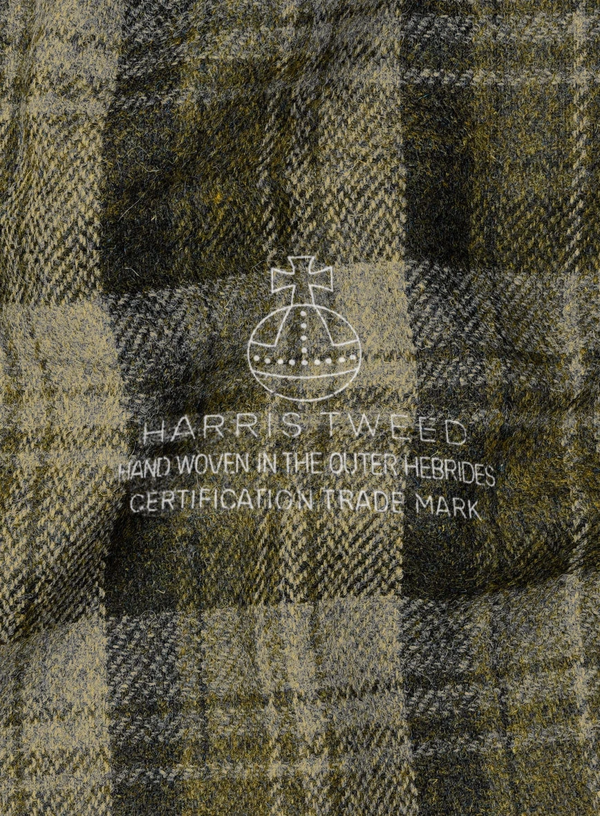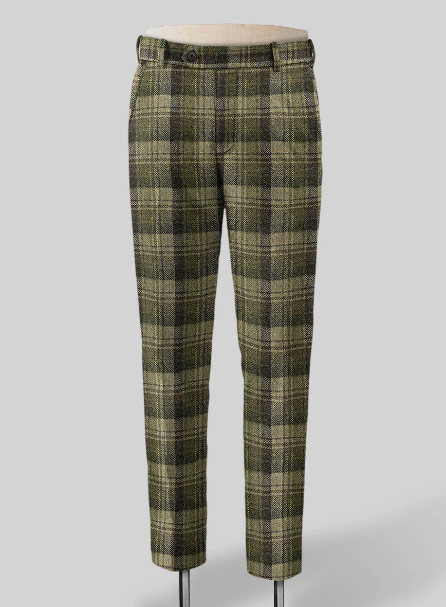 Develop a chic silhouette by donning our Harris Tweed Green Tartan Pants that guarantee a gracious class serving on the social calendar. Besides, it is crafted from pure wool fabric that grants dense, coarse textures and brings a toasty vibe with a checks pattern over a green shade. Finally, sustain the charismatic persona with exquisitely tailored pants that enables a luxurious staple that prioritizes warmth and comfort to see you through frosty days.
