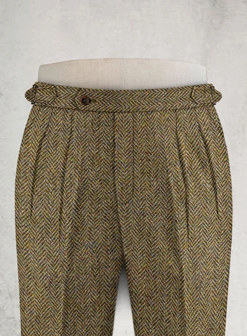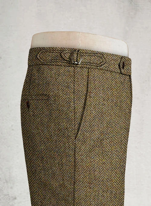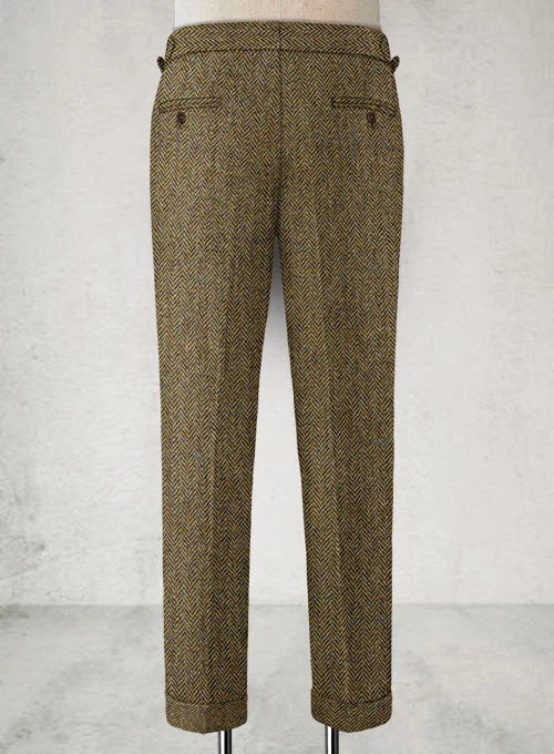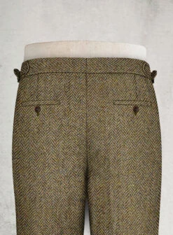 An elegant design incorporating herringbone pattern for long lasting style, our Harris Tweed Hebridean Brown Herringbone Highland Trousers will surely become a go to in your smart closet. Crafted from wool, the great modern classic Harris Tweed trousers offer wearability and versatility to someone who is not afraid of texture.