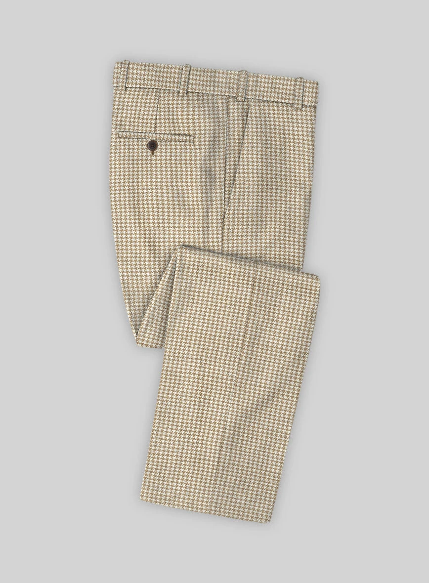 Create a stylish and chic impression with our Highlander Heavy Beige Houndstooth Tweed Pants. Crafted from pure wool fabric, it exudes confidence and expresses your unique individuality through the sophisticated charm of its timeless beige color, complemented by the classic houndstooth pattern. The pants offer a versatile option to make a lasting impact at the office, weddings, and other special occasions.