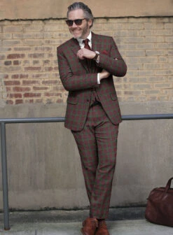 Stay true to your classic oath in the Italian Antio Checks Tweed Suit that evokes confidence with a vintage personality. Our suit is crafted from wool and polyamide fabrics, providing a dense, warm, and snuggly soft finish with green and red tints that keep tradition and a glorious heritage to the core. Elevate your retro vibe with a sharp-cut, stylish suit constructed in wonderfully balanced tones with superior comfort for stepping up on red carpet occasions or chilly outings.