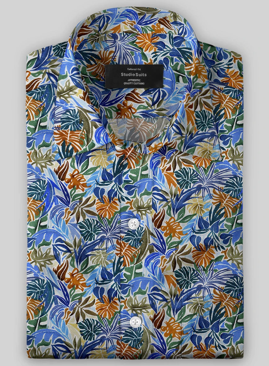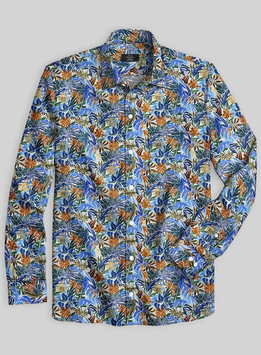 Achieve spotlight-stealing feelings by wearing our Italian Cotton Jungle Trip Shirt, crafted from pure cotton fabric, which provides slim, supple textures with vibrant floral patterns with a relaxed fit ideal for summer tours and weekends.