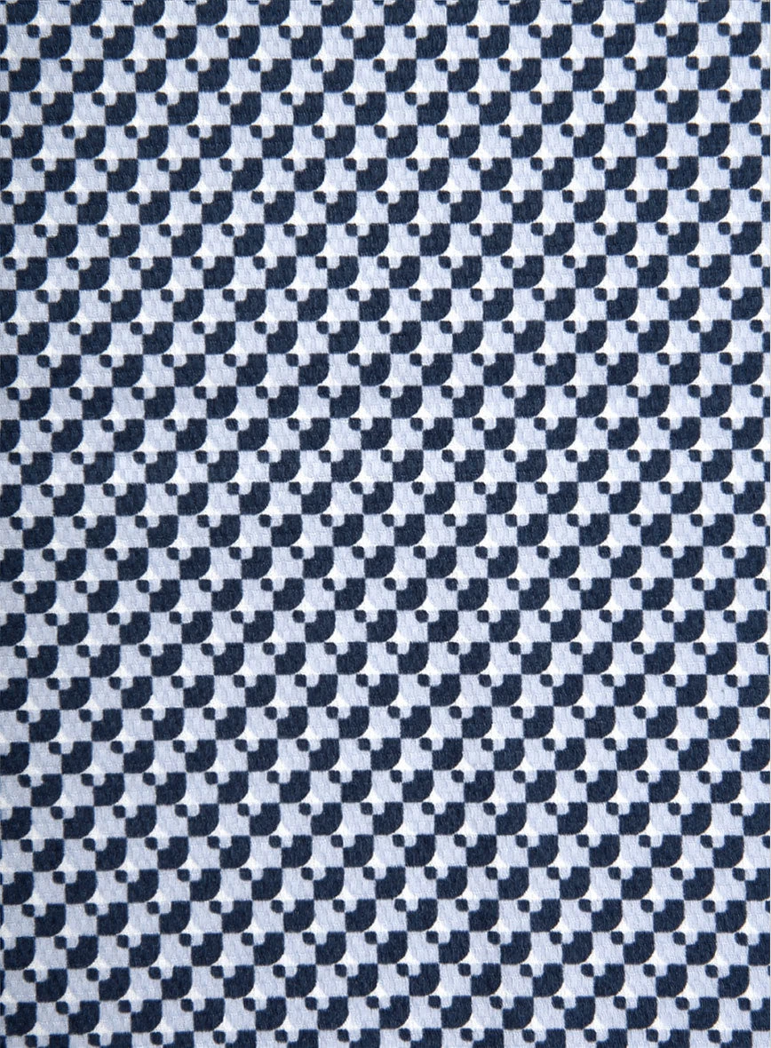 The unique geometric design, with a combination of blue and white hues, makes it your go-to for those days when you need a quick and stylish outfit fix.