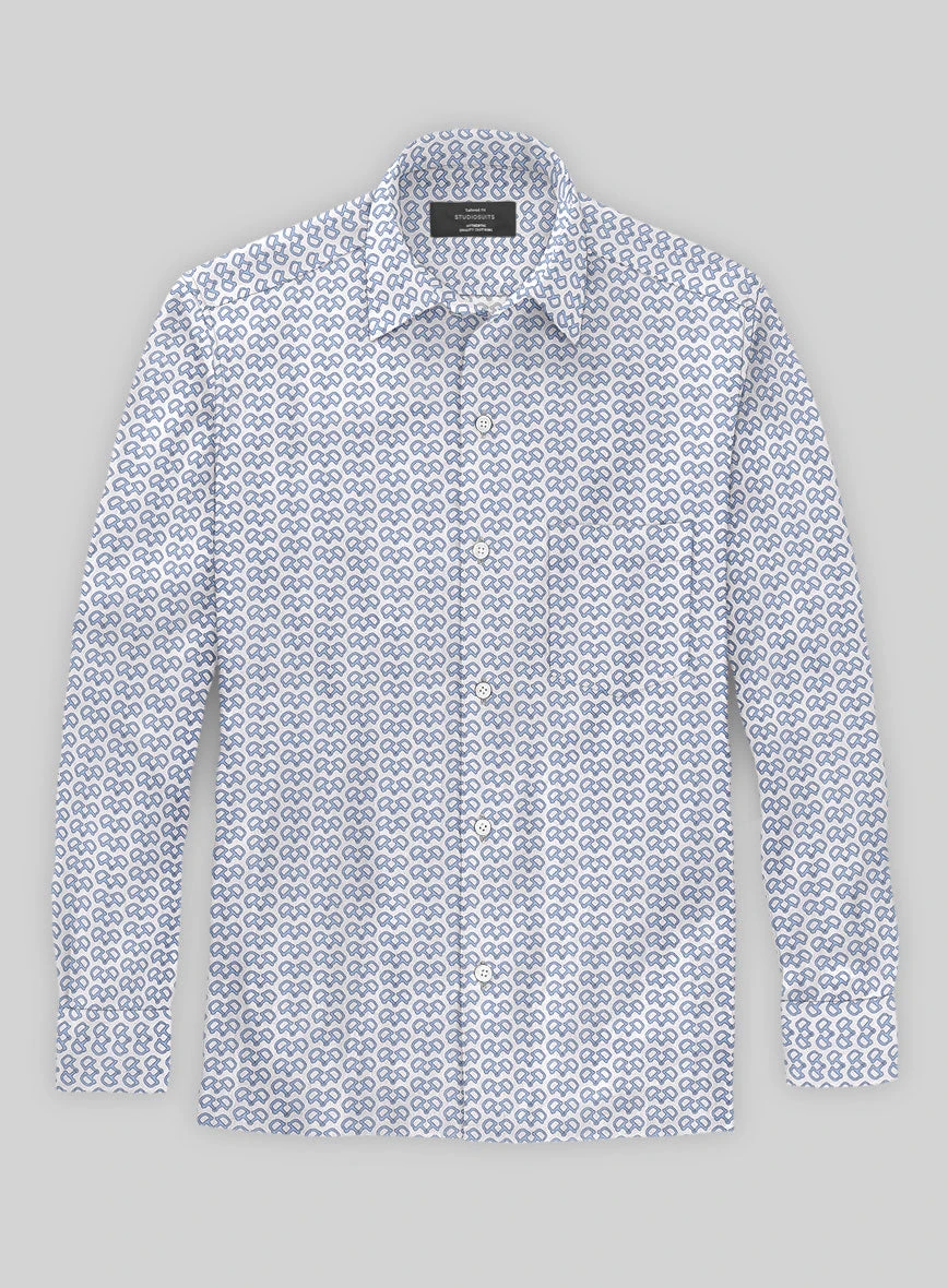 Add a vibrant twist to your look with our Italian Handcuffs Blue Summer Linen Shirt, making it a striking complement that exudes style and flair. Meticulously crafted from a blend of cotton and linen, this shirt features an amazing handcuff design in blue on a white hue that will undoubtedly capture attention and make a statement.