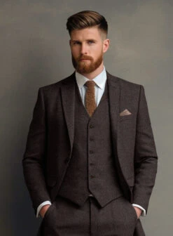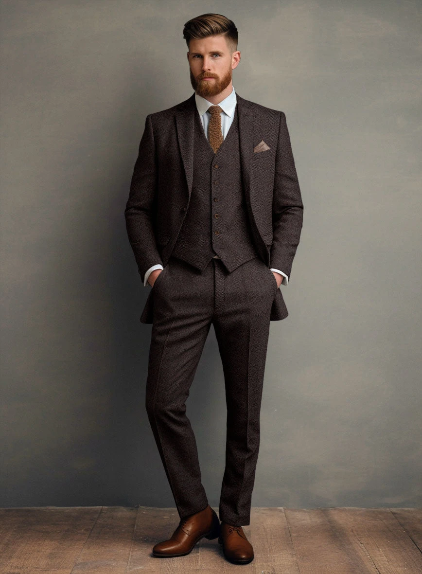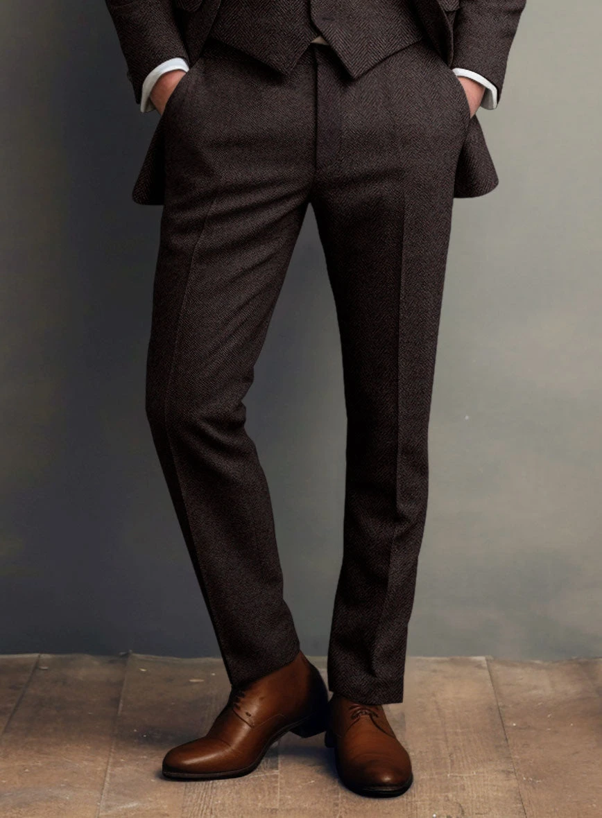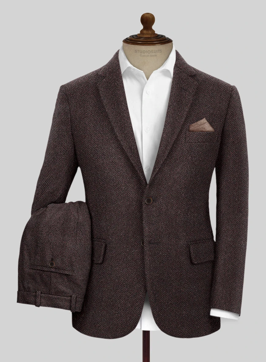 Begin your voyage into distinguished attire with our Italian Highlander Dark Wine Herringbone Tweed Suit. Seamlessly crafted from premium pure wool, this piece mesmerizes with its intricate herringbone pattern, dipped in a deep wine palette for a touch of aristocratic flair. The suit’s expertly engineered drape promises ease and elegance, marrying comfort with poise. Tailored for high-caliber events, upscale weddings, or to command attention in executive settings, this ensemble is a testament to refined tastes.