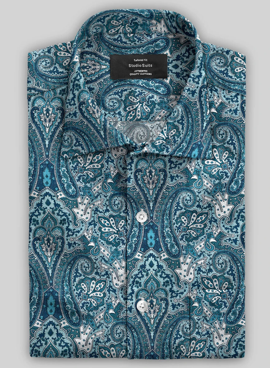 Define your cosmopolitan personality when you don our Italian Linen Carrdo Shirt. Meticulously crafted from pure linen, which is renowned for its exceptional absorbency and breathability, ensuring optimal comfort. The elegant fusion of paisley’s graceful curves in shades of blue accentuates its elegance and attention to detail.