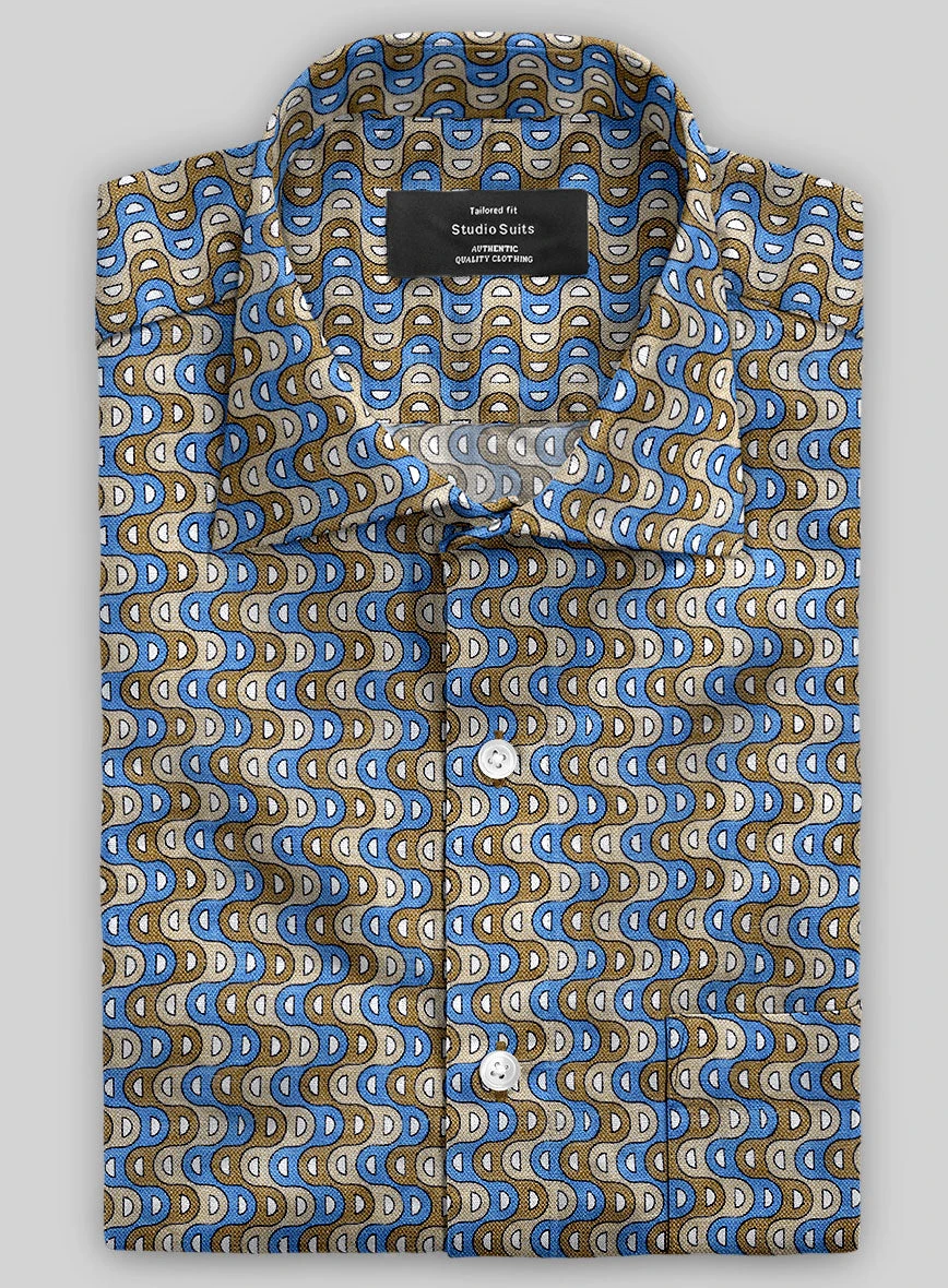 Gift yourself a stylish look with our cool, multi-hued Italian Linen Cassi Shirt. Meticulously crafted from pure linen fabric, it is highly absorbent and moisture-wicking. The shirt features a weave-like pattern with a combination of blue, beige, and brown hues that flow across the fabric, imbuing it with a sense of energy and vitality.