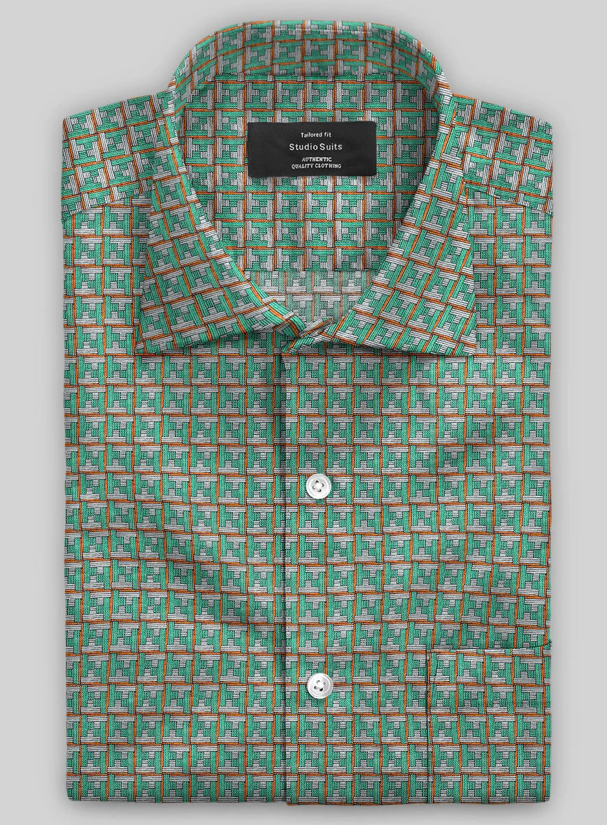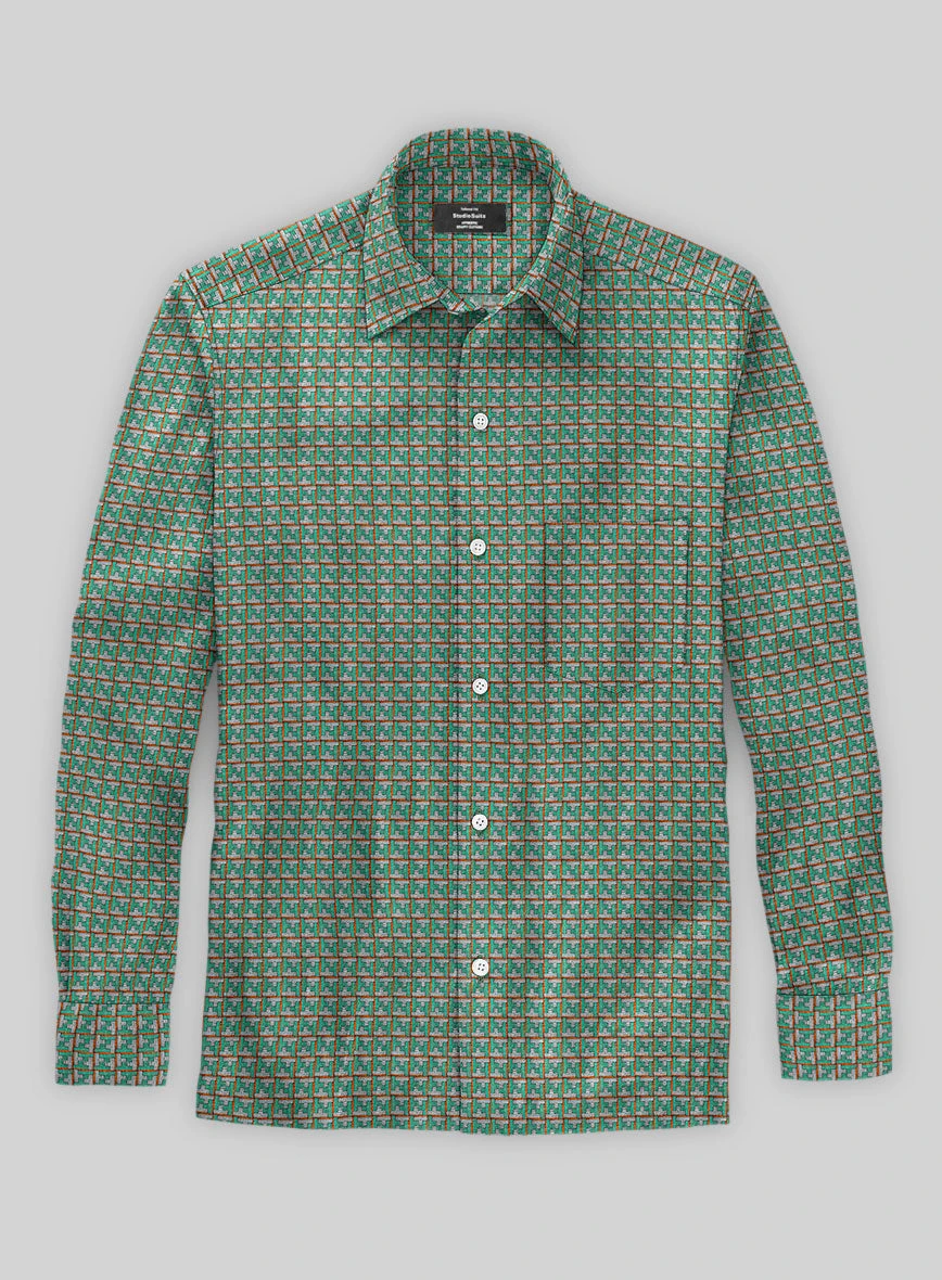Block by block, come and build! Inspired by Lego, our Italian Linen Travo Shirt is perfect for every Lego lover who enjoys creating their own masterpiece. Crafted from pure linen, a staple summer fabric, it harmonizes breathable materials that will keep you cool and looking stylish throughout the season. Its playful building block pattern accentuates the green fabric, evoking cherished childhood memories.