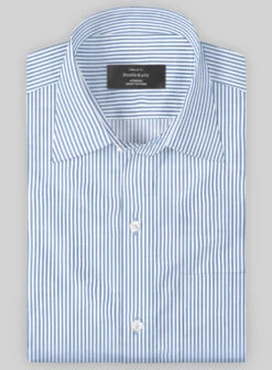 Revamped to perfection by donning our Italian Lombardo Angel Blue Stripes Shirt. Meantime, our shirt is made from a pure cotton material, which portrays a slick, glossy and brings an elegantly smooth feel to the striped pattern over the blue tone.