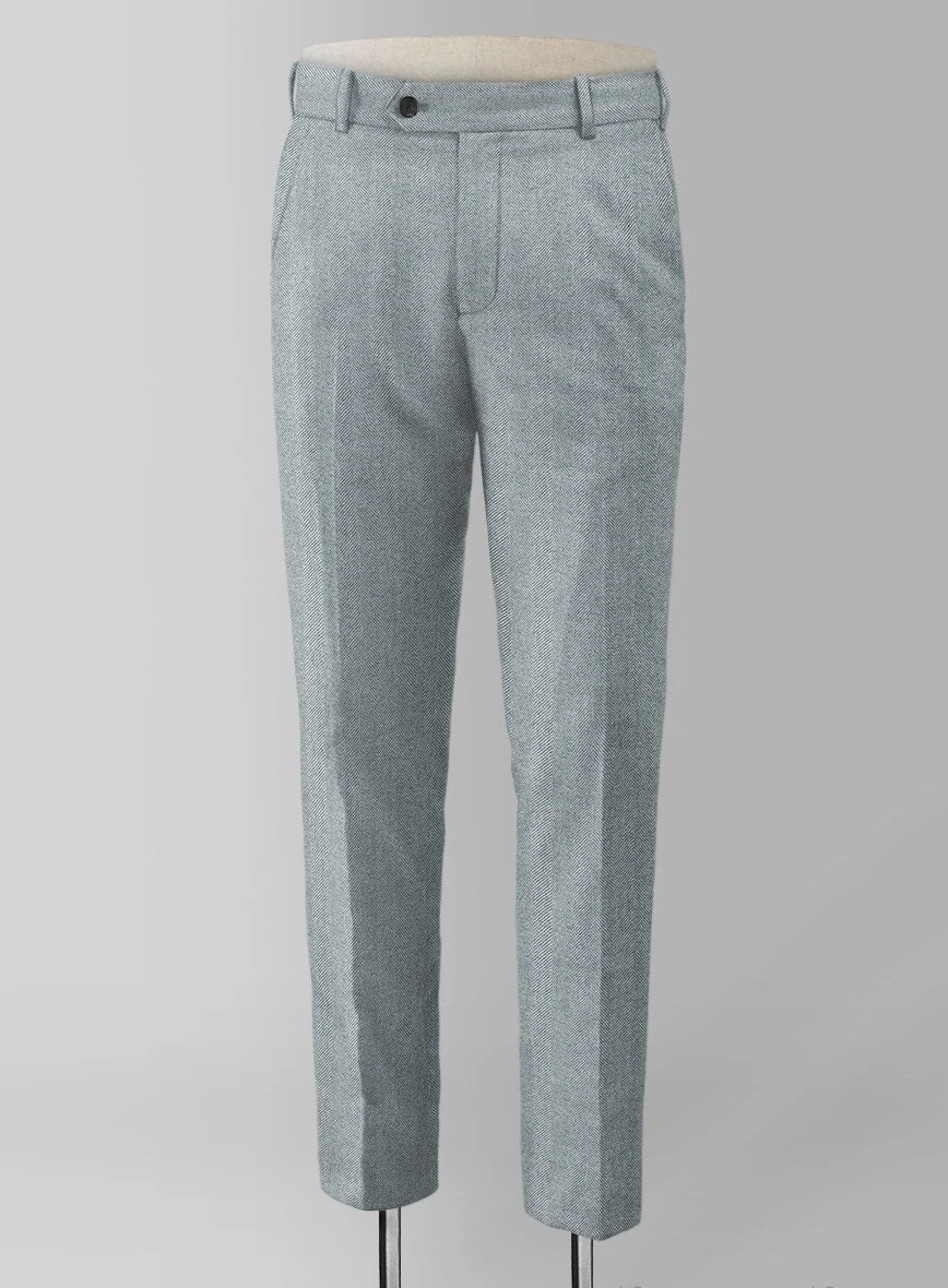 Don a luxurious and stylish piece of couture that will boost your impressive personality to incredible heights of excellence. Tailored with wool blend, our Italian Wide Herringbone Light Tweed Pants have a premium trait with its wide herringbone pattern that offers a choice to excel with your most cherished quality. Moreover, its light blue shade will give your closet a new and fresh perspective. So grab this piece that has quality offering you a chance to be the most stylish person in the room