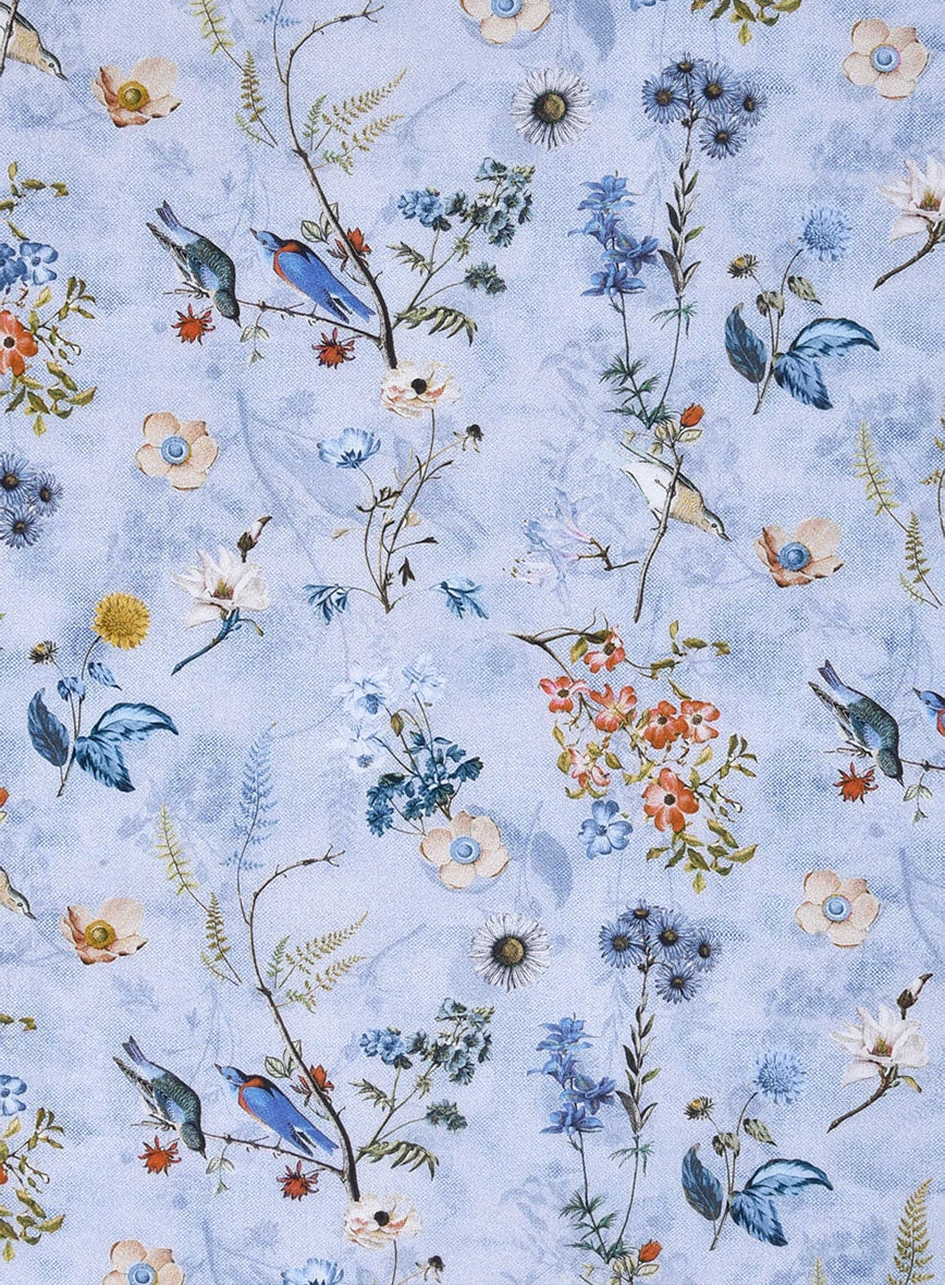 Unveiling our Leggiuno Cotton Inyal Shirt, where the magic of nature intertwines with fashion in the most enchanting manner. Crafted from the finest cotton, it promises a breezy and comfortable vibe. The soothing blue backdrop, adorned with the whimsical charm of birds gracefully perched on blooming flowers, adds a touch of poetry to your wardrobe.