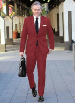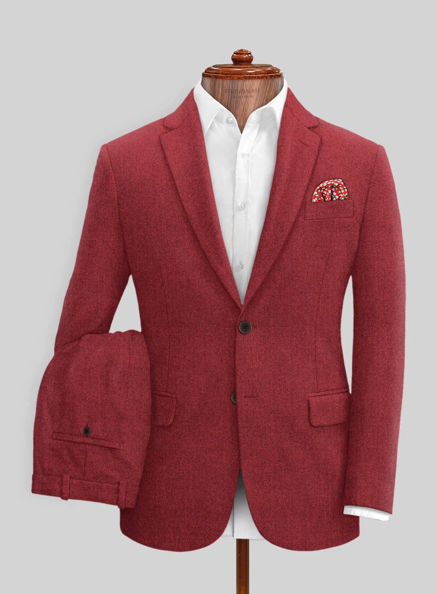 Boasting a rich color scheme and stylish look, our Melange Titan Red Tweed suit is a charming addition to any casual wardrobe that’s utterly timeless and eye catching. Crafted from pure wool, the textured material lends depth and bold character to the suit look that is suitable for off-duty ensemble. Be the center of attention by pairing this suit with a matching waistcoat, white shirt and polished derby shoes.