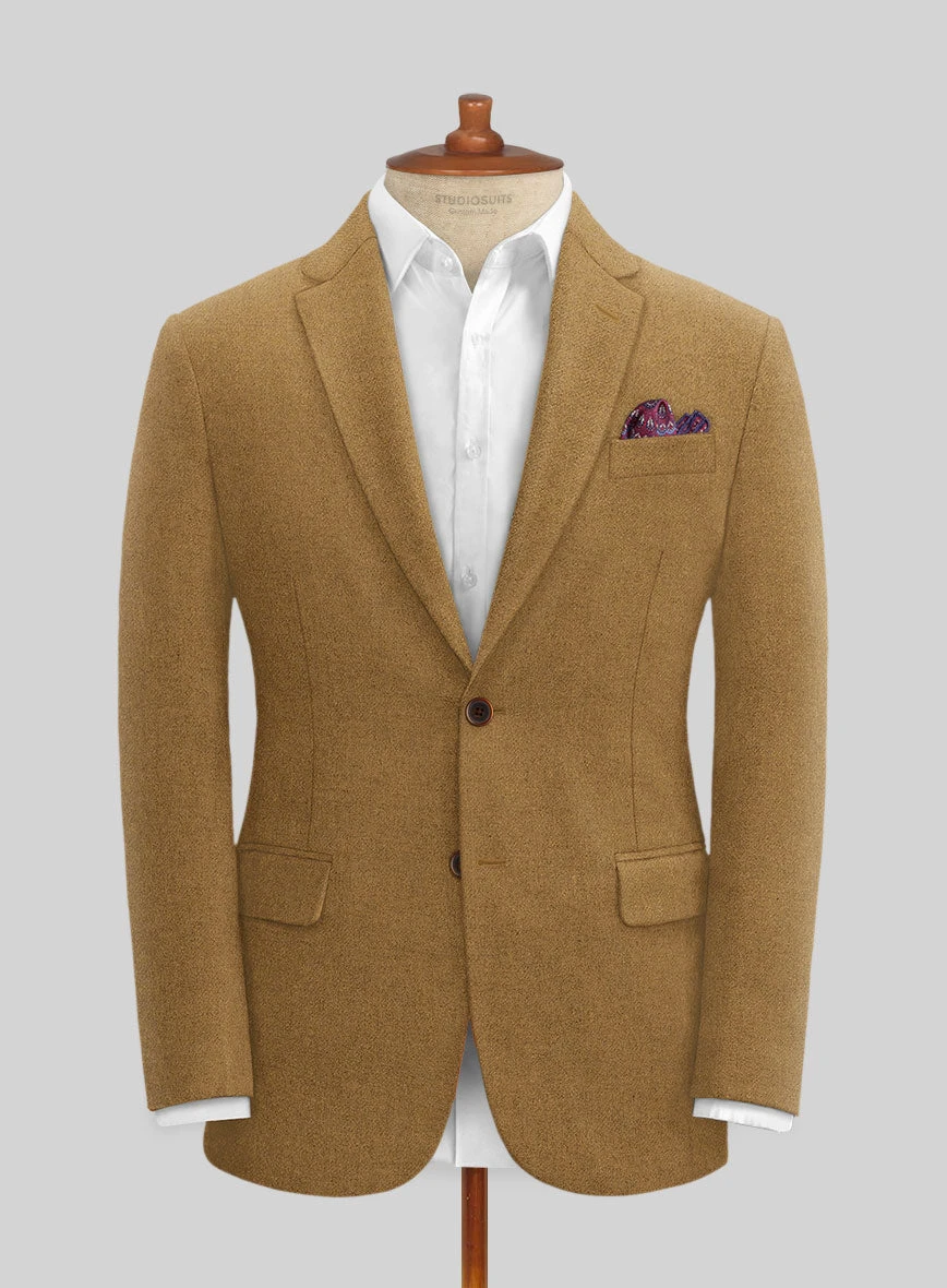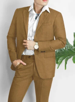 Obtain a distinction in your fashion sense with our Naples Camel Tweed Suit that gets popularity and fame every time you wear it. Cut from a pure wool fabric, our suit has a smooth yet firm texture with a crisp deep golden brown shade that will create a luxe twist in your attire, making a few heads turn towards you with perks to move comfortably. So don our suit that adds flavor to your look and will freshen up your remarkable suiting collections in total luxury.