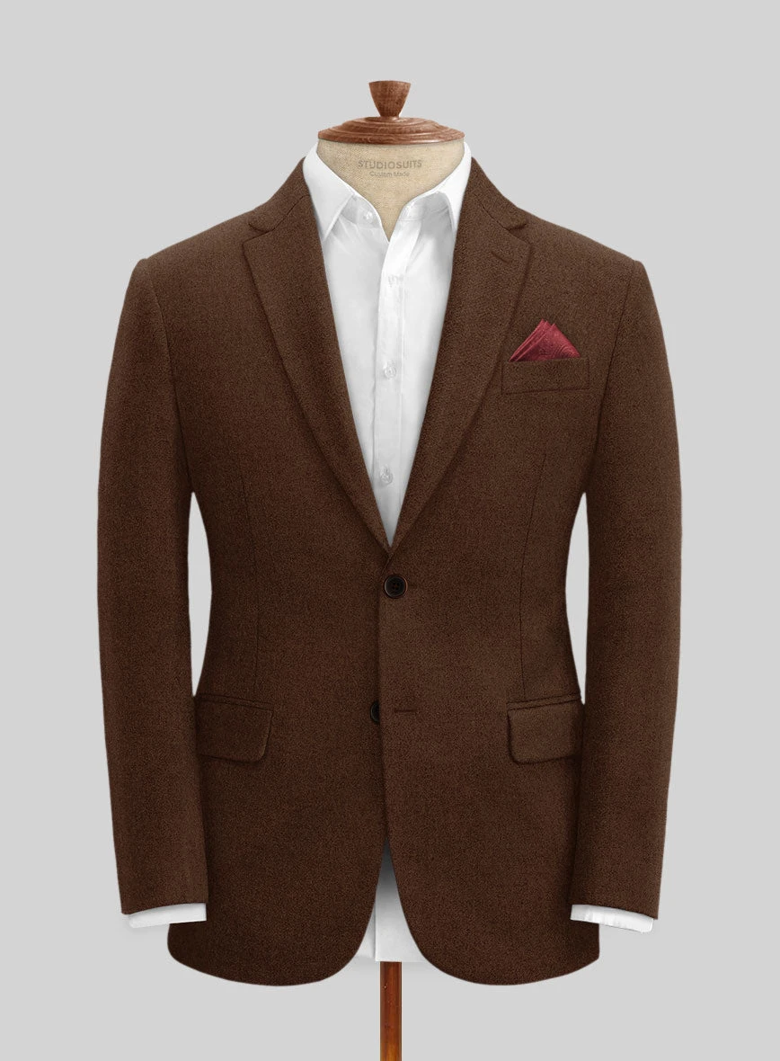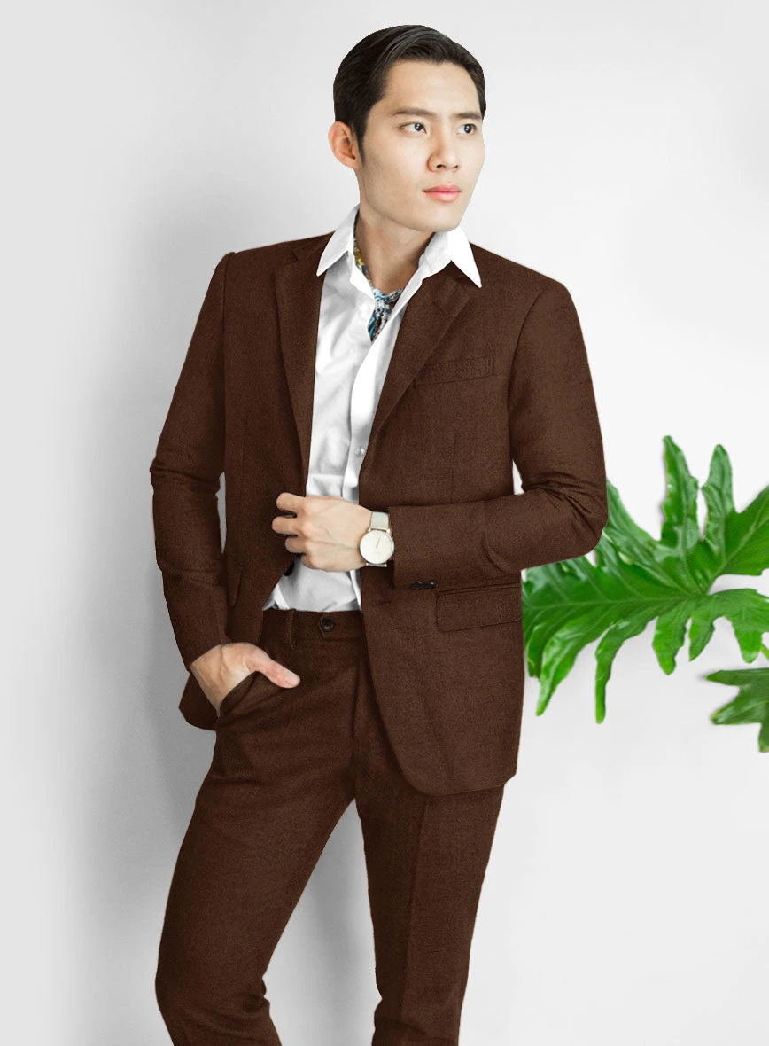 Shift your focus to modern suiting with our Naples Coffee Brown Tweed Suit. Crafted from high-quality wool fabric, this gem features a beautiful coffee brown color and a plain pattern that exudes nothing short of perfection. Its timeless style makes it suitable for all celebratory occasions, from weddings and banquets to formal events like meetings and interviews, ensuring that you look both witty and charming.