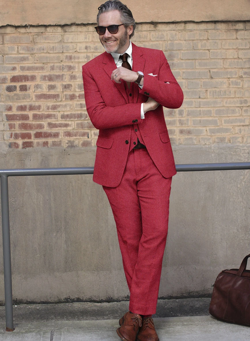 Reveal the charming vanity by pairing our Naples Coral Pink Tweed Suit that gloriously flaunts a sharp profile. In addition, it radiates the heritage style while crafted from pure wool fabric, which offers a soft, pleasingly smooth teams up a resilient nature that grants a surreal outline with a solid finish over a pink tinge. Further, aiming for a unique addition to the sophisticated arsenal, thanks to shapely cuts, the suit bestows an elegant appeal to the pleasing curves perfect for destination ceremonies and off-duty looks.