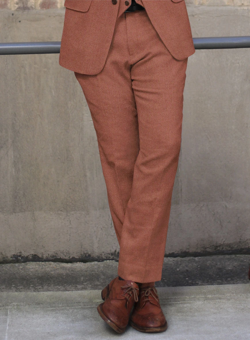 Although fashion trends may come and go, true style endures. Showcase your impeccable taste with our Naples Dark Salmon Pink Tweed Pants. Expertly crafted from premium wool fibers, it boasts a solid texture in a dark salmon pink colorway, which is often associated with vitality and perseverance. If you have a special occasion or a high-class party on the horizon, these pants are sure to make you the center of attention and elevate your formal wardrobe to the next level.
