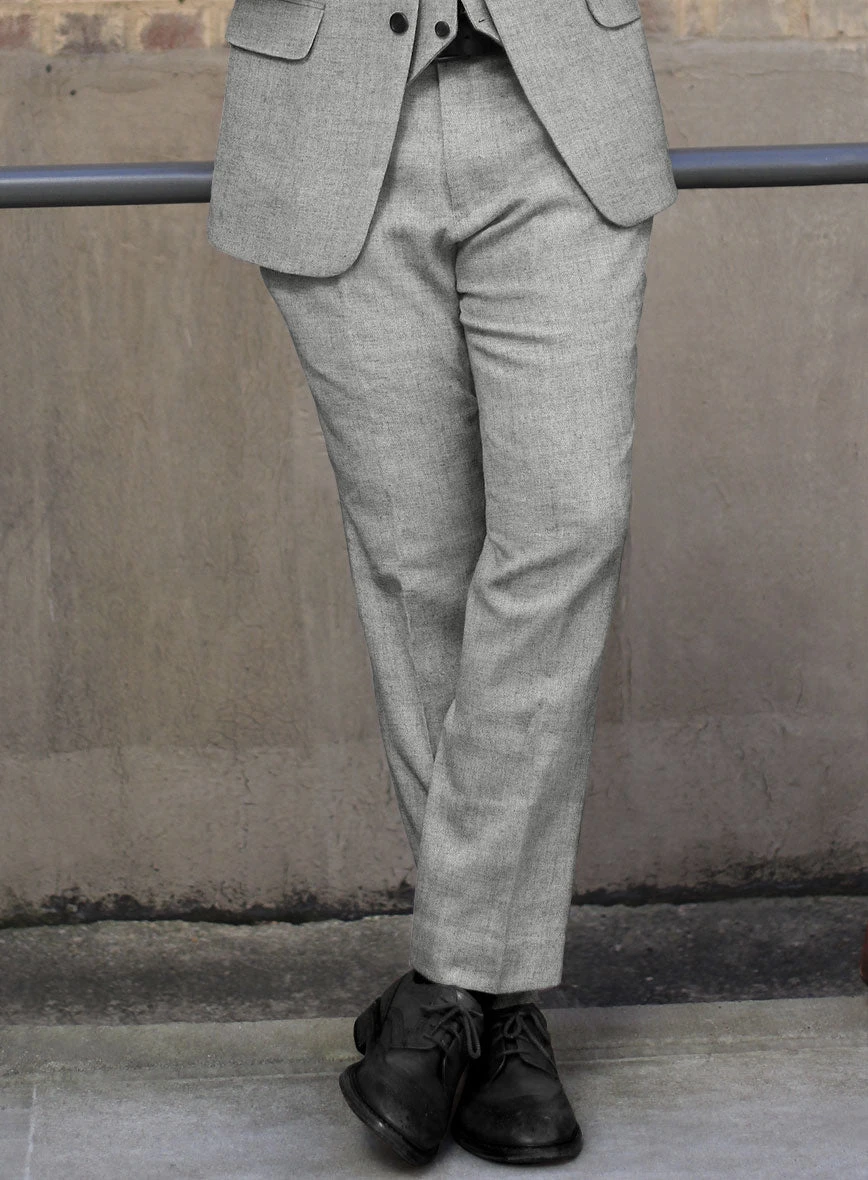 Set the trend with our Naples Light Gray Tweed Pants, meticulously crafted from high-quality pure wool fabric. Its elegant light gray color scheme and neutral solid pattern make it exceptionally smooth and soft against the skin while also providing breathability, perfect for both everyday wear and formal events.