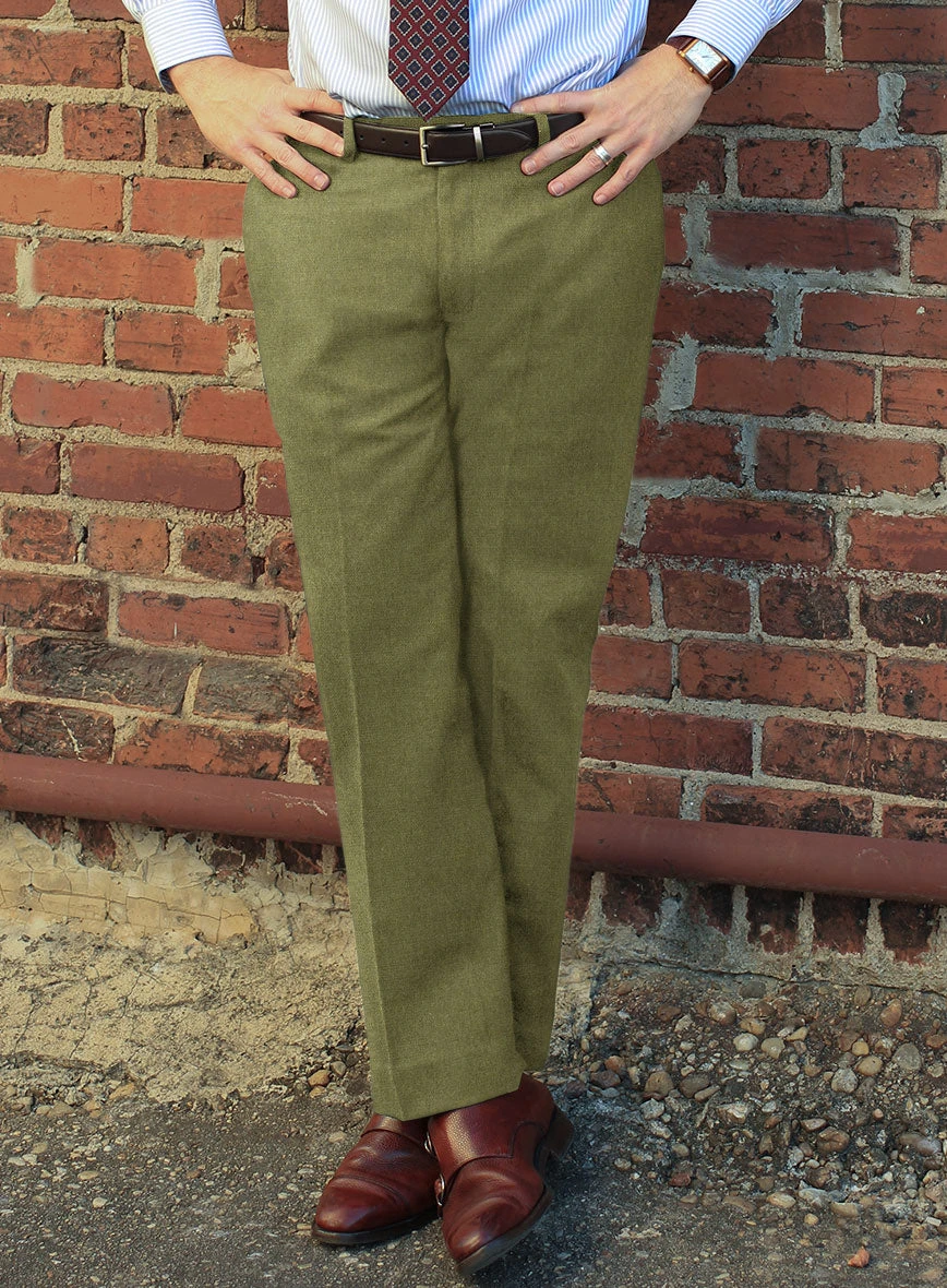 Amp up the grace with the inclusion of our Naples Martini Green Tweed Pants, a true style stalwart. Besides, our pants are crafted from pure wool fabric and offer a soft, comfy feeling which carries a snug warmth that covers up as cozy as elegant with a solid pattern over a green shade. Appeal a chic statement matching with sharp tailoring imparts curvy outlines, which will boldly define the couture while appearing at a glamorous event or ceremonial occasion.