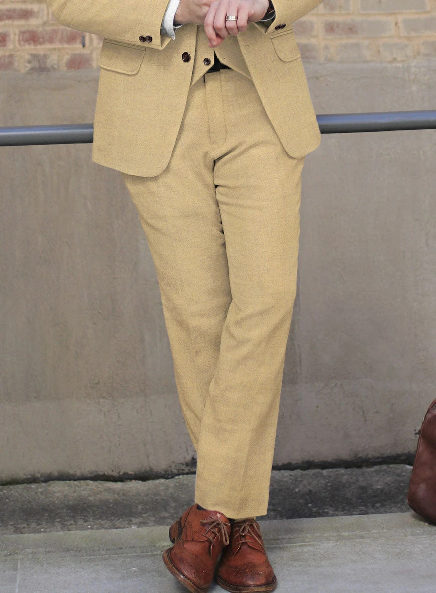 Looking to add some uniqueness and timelessness to your collection? Look no further than our Naples Sahara Beige Tweed Suit. Meticulously crafted from pure wool, it features a soothing beige hue, making it a versatile addition to your wardrobe that will definitely grab attention. Style it to exude charm and enhance your masculinity.