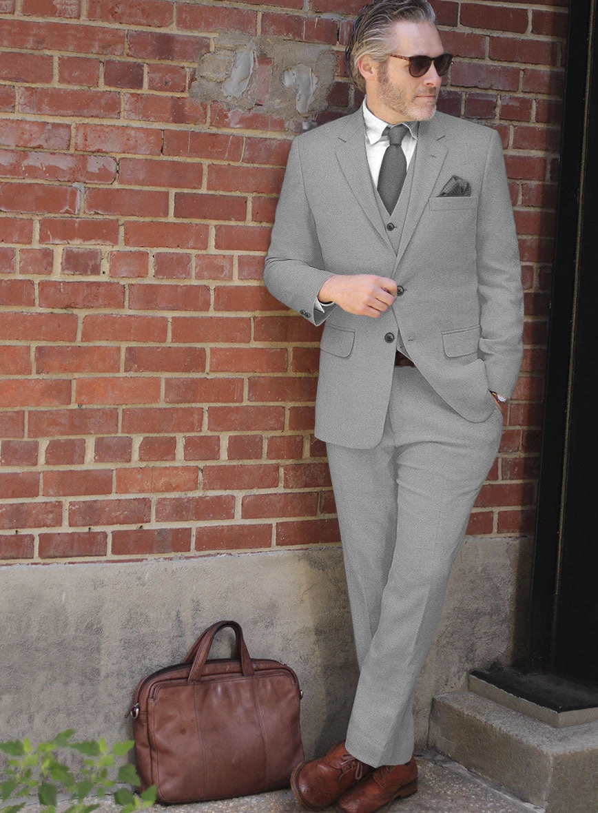 Appreciate your style with our Naples Steel Gray Tweed Suit, flawlessly crafted with premium-quality wool that feels soft and soothing against the skin. This classic suit features a plain steel gray texture that elevates your tailoring and is perfect for any occasion, from formal events to a day at the office. Enhance your suave presence with this stylish and versatile suit.