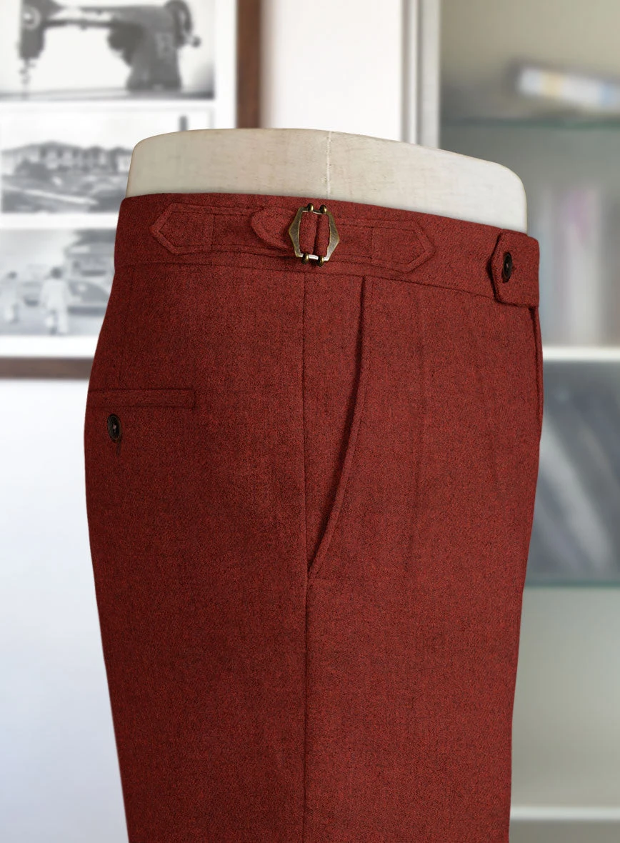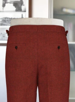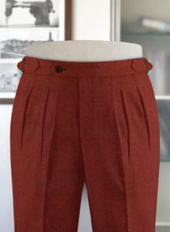 Unfurl the suave glance with our Naples Sundowner Rust Tweed Highland Tweed Trousers, which flare up the stylish aura on any occasion. Furthermore, these pairs are made from pure wool fabric, which interprets a deep, smooth touch adding a luxurious depth to the character that lends a balmy warmth with a solid finish over a glorious rust tone. Lastly, claim the throne of boldness by merging the strict tailoring, which excels the suave summits with a sculpted silhouette perfect for heading to destination weddings and ceremonial functions.
