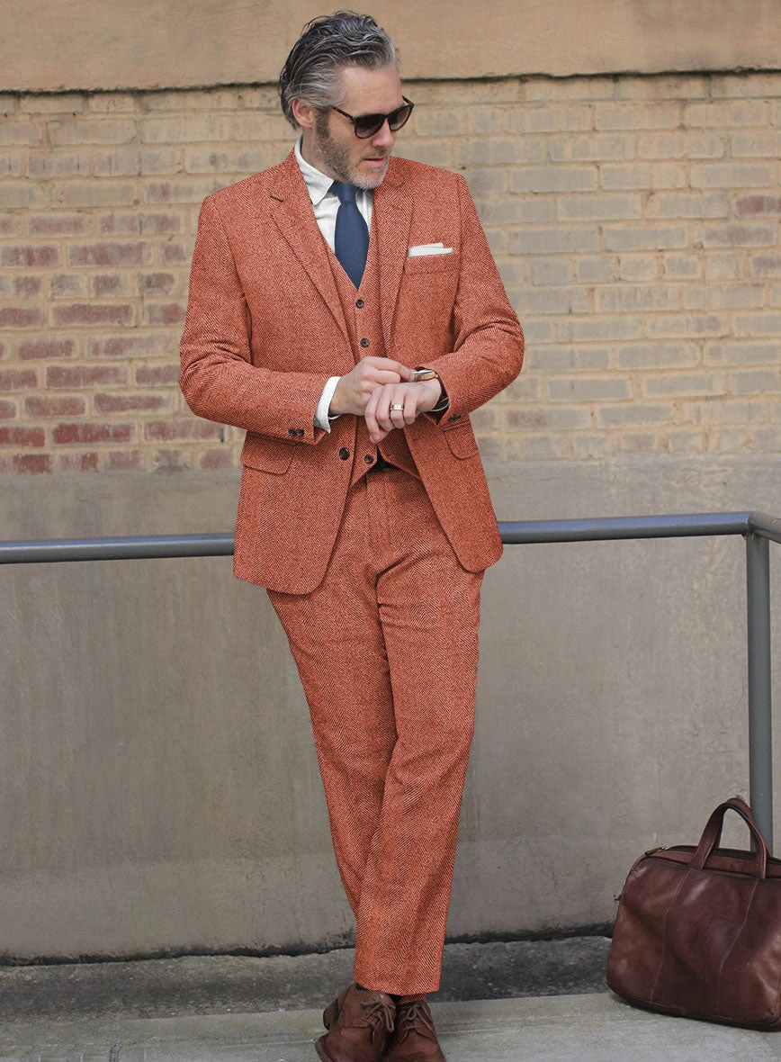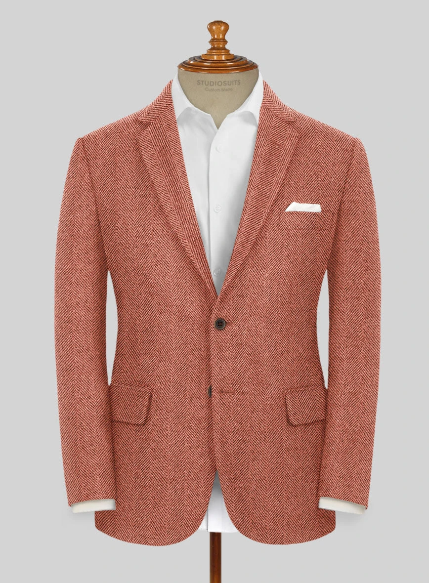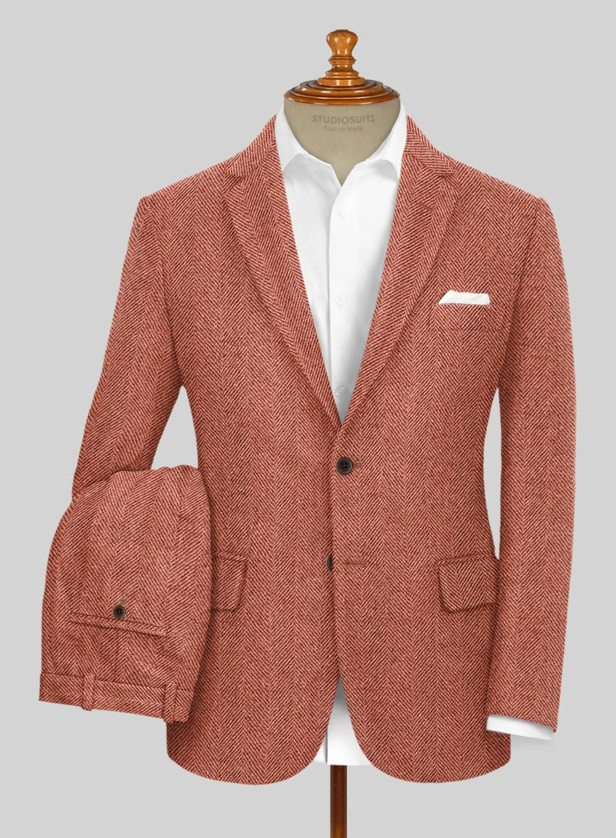Perfectly suited for your social calendar – our exceptional Naples Wide Herringbone Carmine Pink Tweed Suit is exquisitely designed in a refined carmine pink shade. Crafted from pure wool fabric, it embodies timeless elegance through its intricate herringbone texture while offering utmost comfort. Seamlessly integrate this suit into your formal collection for weddings and festive occasions.