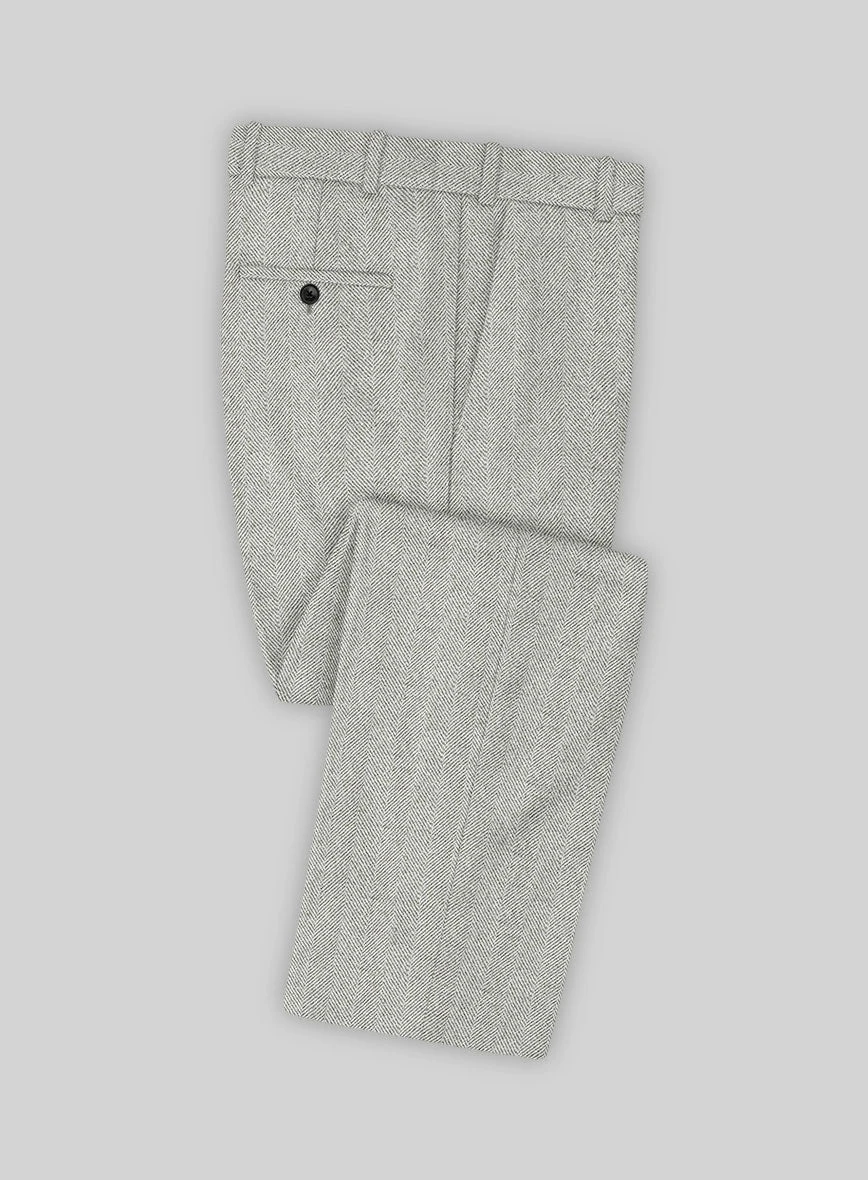 Make a lasting first impression with our Naples Wide Herringbone Light Gray Tweed Pants. This remarkable addition is a must-have for any gentleman’s collection, expertly crafted from pure wool. Its cozy design ensures warmth during winter evenings, making it an ideal companion. The calming gray shade, intricately woven on a plain surface, offers a superb choice for upcoming cold-weather occasions.