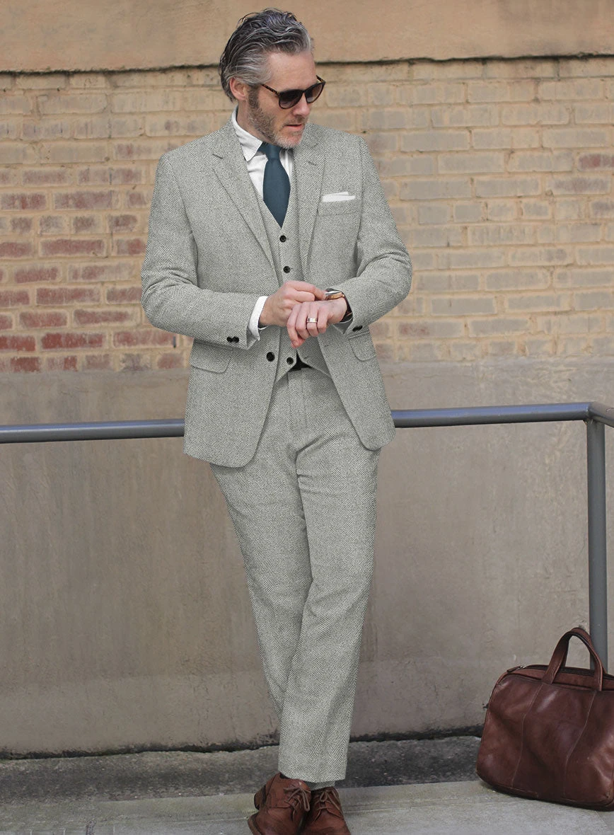Make a lasting first impression with our Naples Wide Herringbone Light Gray Tweed Suit. This remarkable addition is a must-have for any gentleman’s collection, expertly crafted from pure wool. Its cozy design ensures warmth during winter evenings, making it an ideal companion. The calming gray shade, intricately woven on a plain surface, offers a superb choice for upcoming cold-weather occasions.