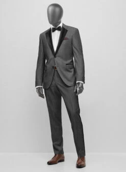 Infuse a dose of a stylish and relaxed feel with our Napolean English Charcoal Wool Tuxedo Suit that hallmarks your outfit to perfection. Tailored with a Super 140’s wool blended fabric, our tuxedo suit has a smooth, sleek look with a dashing gray shade that keeps your moments carefree and comfy. So coordinate your ensemble with this tuxedo suit that will keep your office hours fresh and more appealing.