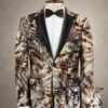 Featuring satin lapel, matching satin covered buttons and gentle texture at its surface, our tuxedo is a subtle fashion-forward take on a traditional tailoring.