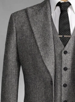 Thomas Shelby Peaky Blinders Vintage Gray Tweed Suit is a statement piece that vaunts itself with a herringbone tweed weave which has an old-school finish. Styled for a perfect gentleman, this eye-catching suit gives an on-trend yet luxurious tailored fit look. Crafted from wool, our tweed suit will create a look of Thomas Shelby from Peaky Binders ideal for when you need to look smart and confident. The sharp cut of this ensemble creates a classic yet modern style that will last a lifetime.