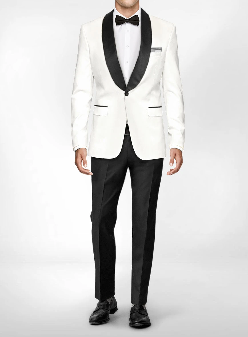 Order black pants white jacket suit for the precise fit to emphasize clean lines and its exceptional design. You can even customize the details of this tux to ensure you feel comfortable wearing it. Our White tuxedo jacket with a black collar looks slick and more expensive than it is.