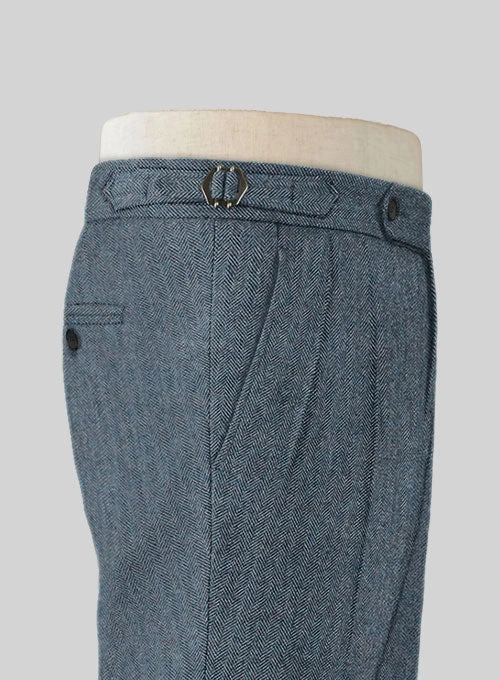 Both classic and versatile, our Vintage Herringbone Blue Highland Tweed Trousers are surely going to take you through the seasons with stylish ease. Crafted from wool, these tweed pants are rich in quality and lend a distinctly bespoke edge which makes it a suave choice.